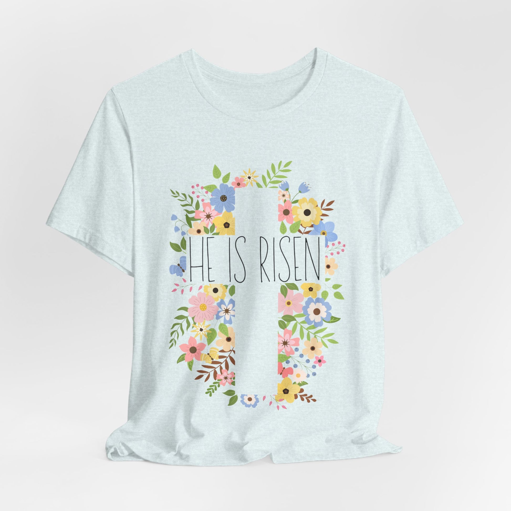 This Christian T-shirt celebrates the resurrection with the message 'He Is Risen'. It gives a positive and uplifting vibe, perfect for those looking to express their faith and belief. Ideal for Christians celebrating Easter, but also suitable for everyday wear to spread the message of hope.